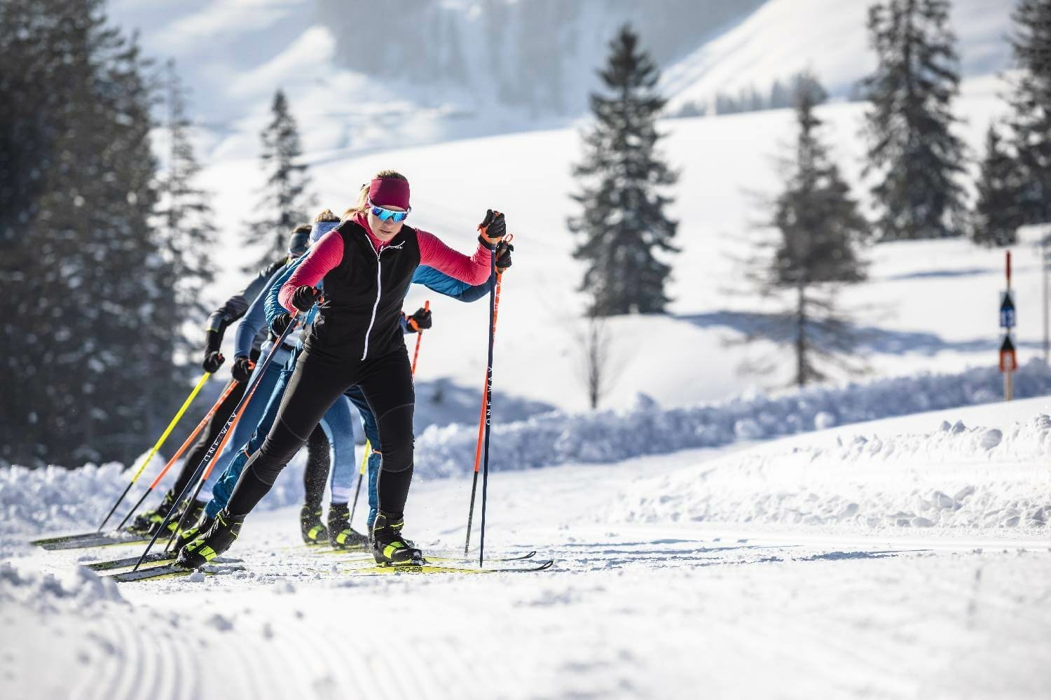 Sporty elastic tights Evo with windproof Gore-Tex Infinium(TM) Windstopper® material on the front. Protective transtex® lining in the back and knee area guarantees best climate management.