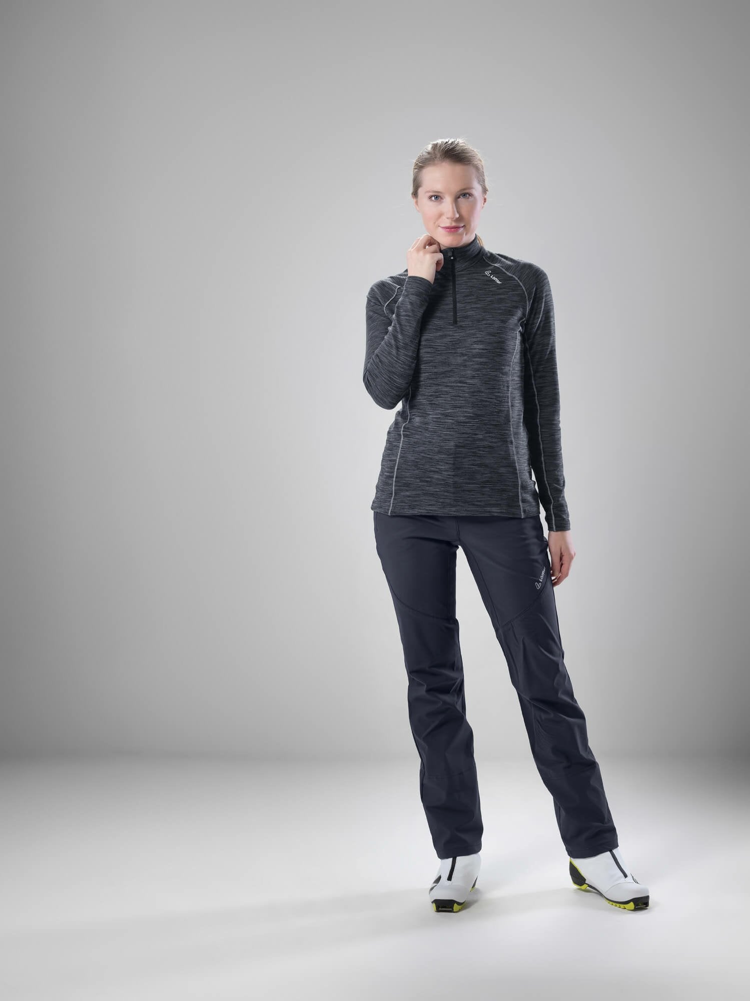 Heat-insulating pants made of 4-way-stretch material and elastic waistband with belt loops. Thanks to the integrated snow guard, the pants are ideal for winter outdoor activities.