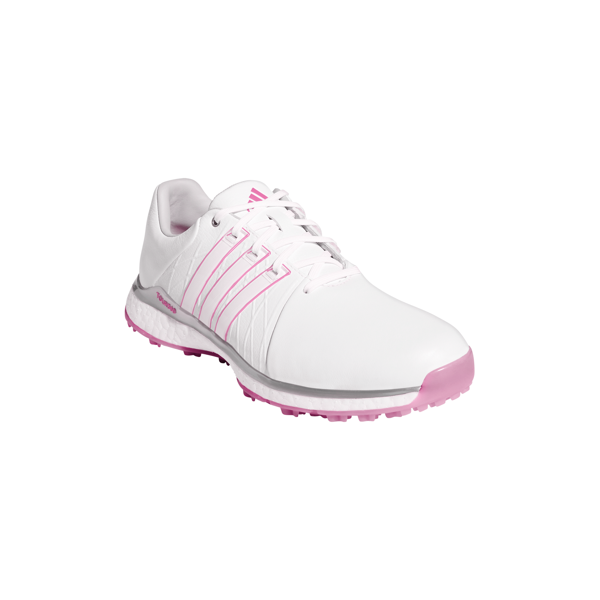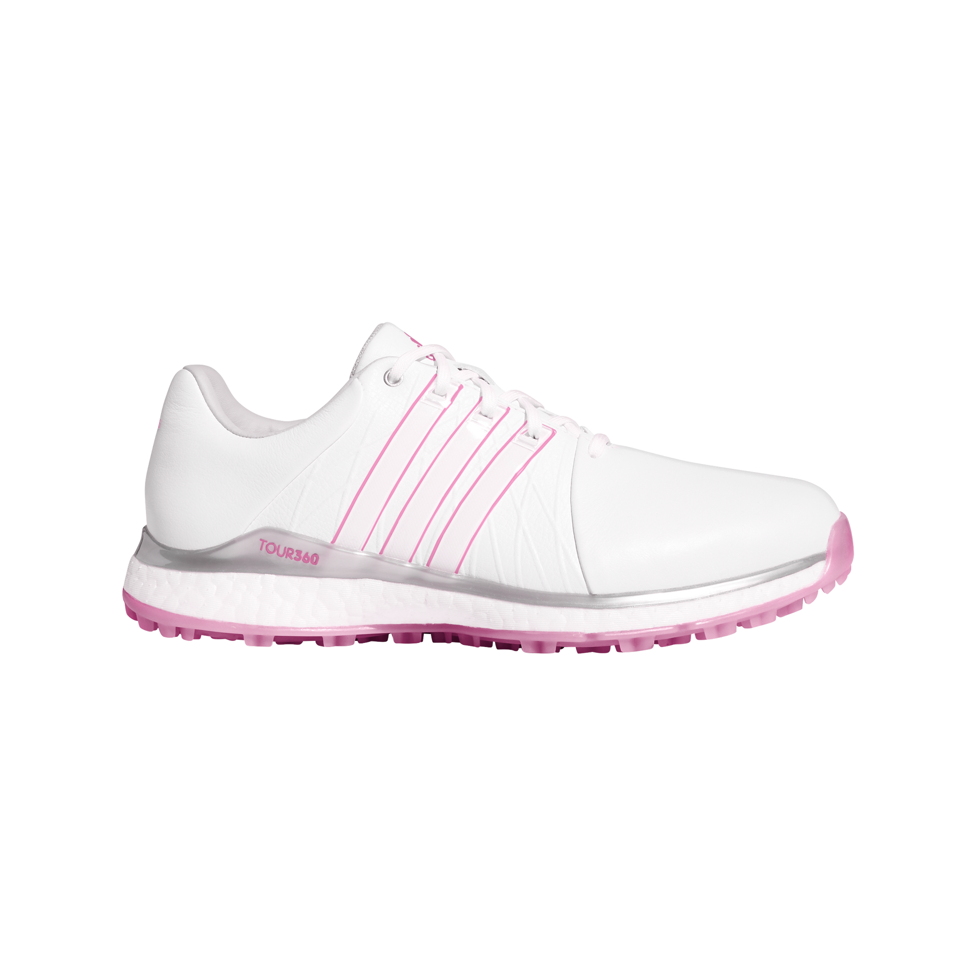 Tour-level stability and full-round comfort. These women's golf shoes feature a waterproof leather upper to keep your feet dry. The 360Wrap lockdown provides foot-hugging support. A Boost midsole energizes every stance and step for full-round comfort. The spikeless outsole maintains a positive grip in all conditions.