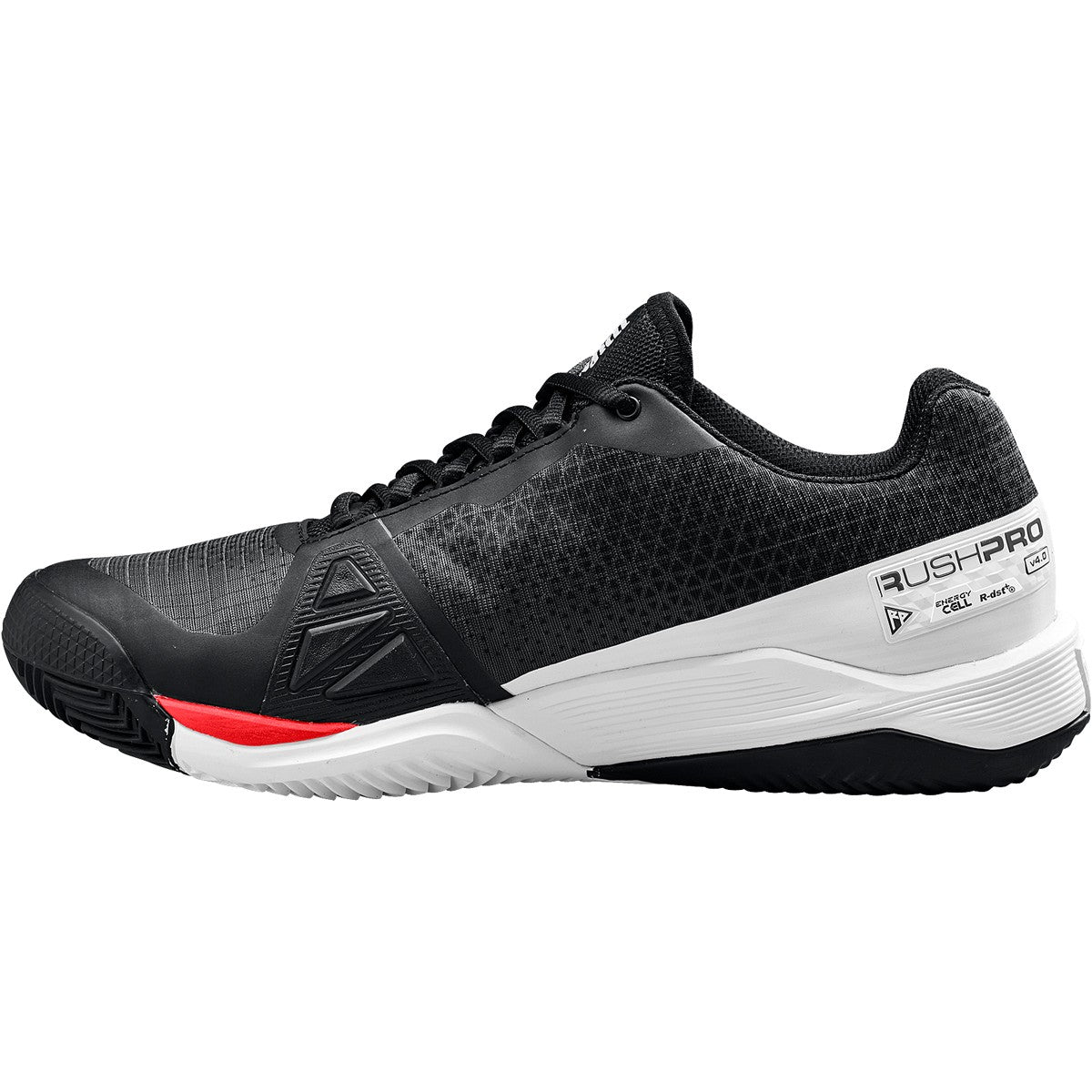 The Rush Pro 4.0 Clay upgrades dynamic court movement thanks to a pair of innovations in the midsole and outsole. An evolution of the Rush Pro 3.5 chassis construction, 4D Support Chassis 2.0 splits the chassis into two pieces for a dual purpose: one piece runs under the foot for enhanced support and forward propulsion, while the other runs laterally for additional stability and control. In the forefoot of the midsole, Energy Cell features a lightweight EVA foam designed to optimize the transfer of body weight through impact for more explosive propulsion. Layer in a sleek silhouette, and the result is a shoe that takes the popular Rush Pro franchise to all-new heights for both design and performance.